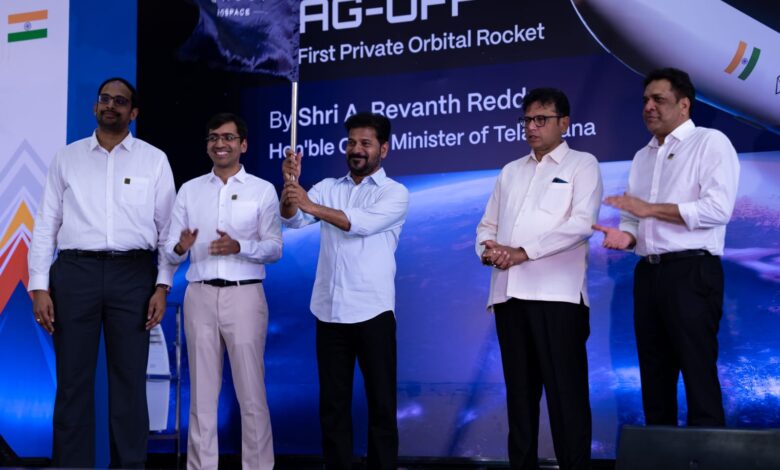 Skyroot’s Vikram-1, India’s First Private Orbital Rocket, Flagged Off by Telangana CM for Sriharikota